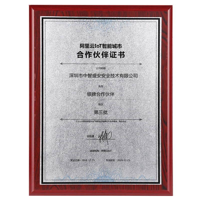 • 2018年度榮獲“阿里云IoT智能城市銀牌合作伙伴”稱號