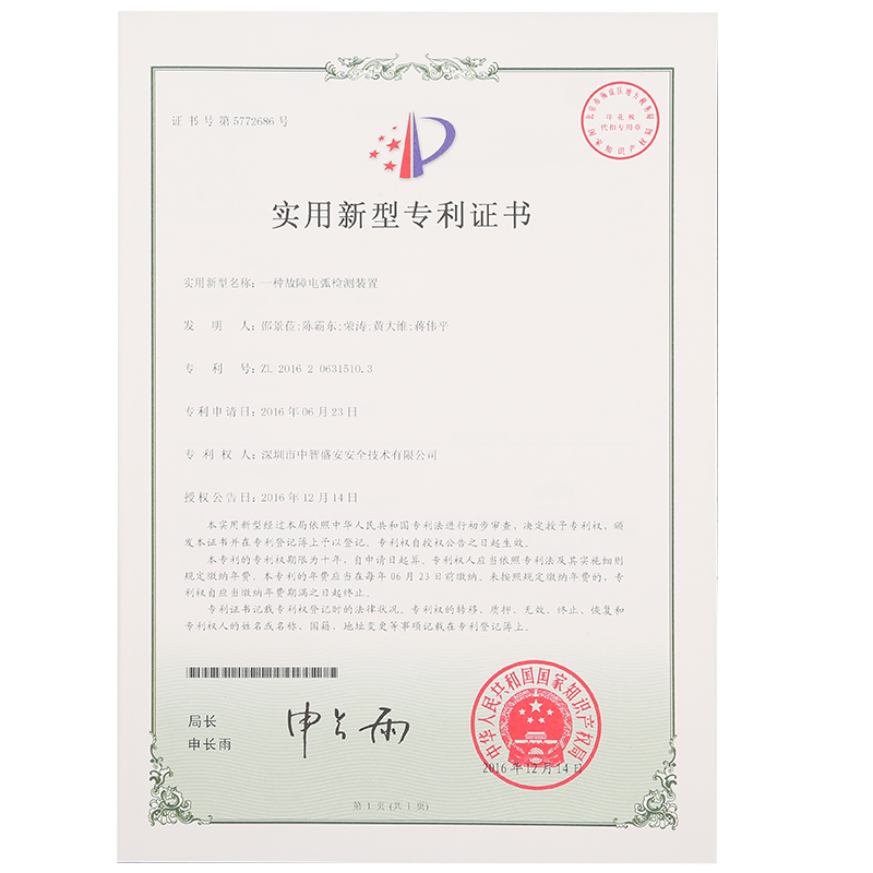 • “故障電弧檢測軟件”著作權登記證書