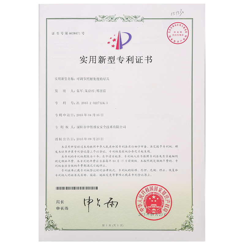 • “可調節照射角度的燈具”專利