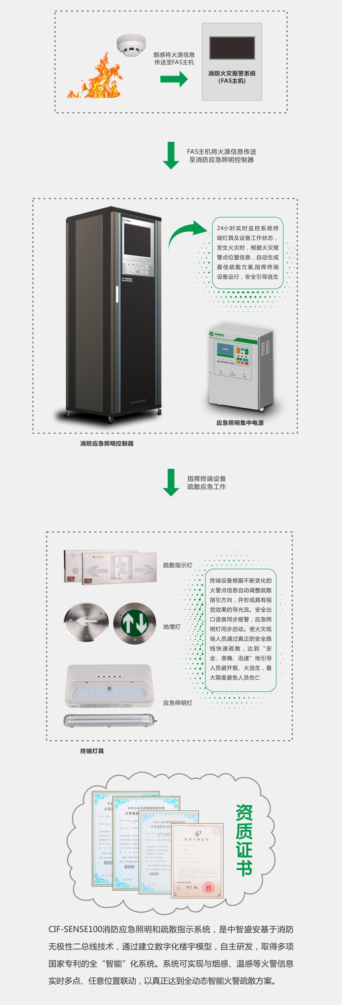 在火災發(fā)生時,根據FAS火災報警信息及煙霧蔓延方向(需與火災自動報警系統(tǒng)聯(lián)接),智能地為建筑內的人群指示出最佳逃生路線,讓被困人員安全、準確、迅速的逃離火災現(xiàn)場。