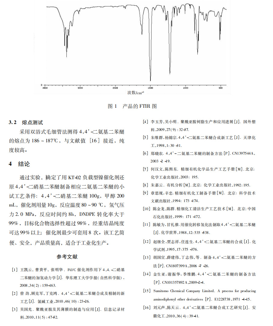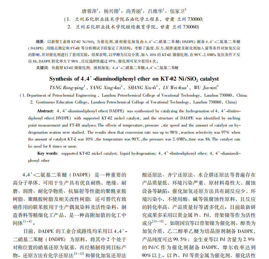 KT-02 負(fù)載型鎳催化劑作用下合成 4,4’-二氨基二苯醚的工藝研究