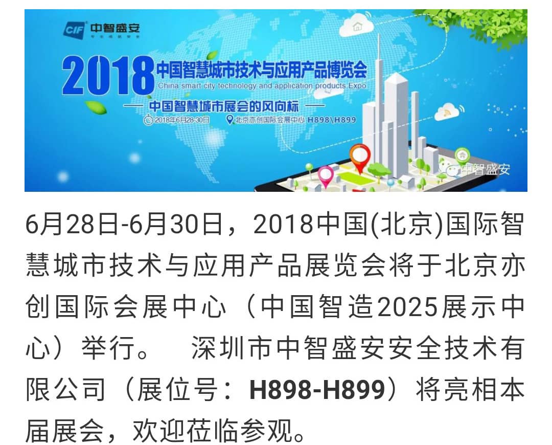 中智盛安邀您參加2018中國(北京)國際智慧城市技術與應用產品展覽會