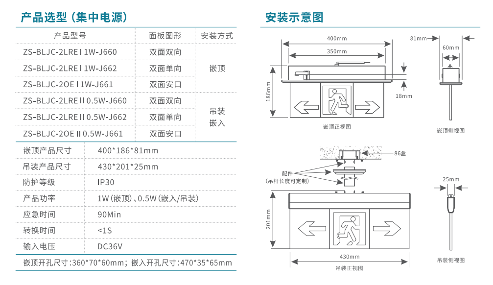雙面單向標志燈(水晶吊牌款)消防應急標志燈 | ZS-BLJC-2LRE I1W-J662 | 嵌裝