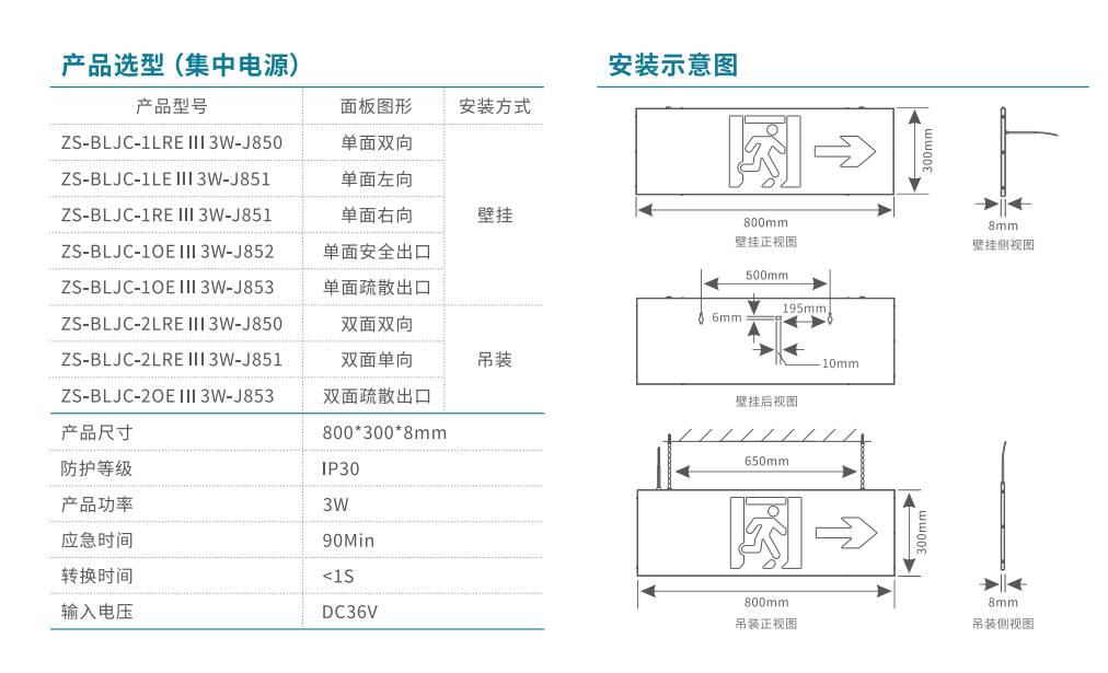 800大型款-雙面疏散出口消防應(yīng)急標(biāo)志燈 | ZS-BLJC-2OE Ⅲ 3W-J853 | 吊掛